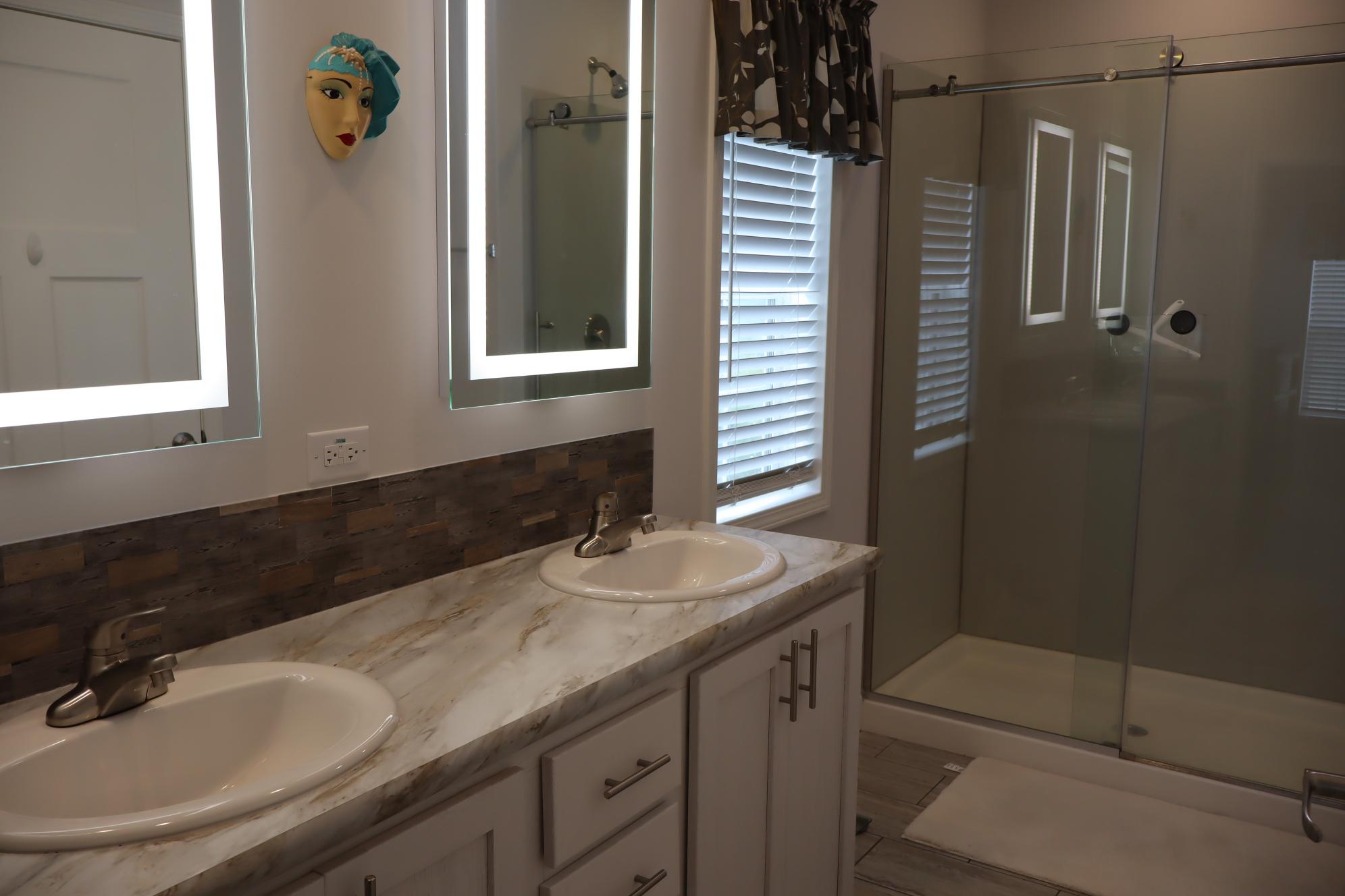 FEATURES: 2023 - Drywall with Rounded Corners & Knock Down Finish, Whole House Shut-Off, Stainless Steel Appliance Package, Upgraded Cabinets, 60" Marble Shower w/Shower Head & 60" Glass Barn Shower Door, Raised Screen Porch, 2-LED Mirror in Master Bath, Insulation R-30 Roof, R-19 Walls, R-11 Floors, 3 Tab Shingles, Kitchen - Soft Close Door Hinges, Full Ceramic Backsplash - Silver Ash, 7" Deep Stainless Steel Farm House Sink, Countertops - Drama Marble, Vinyl Flooring throughout Home, Central A/C & Heat, Digital Thermostat & Humidistat.