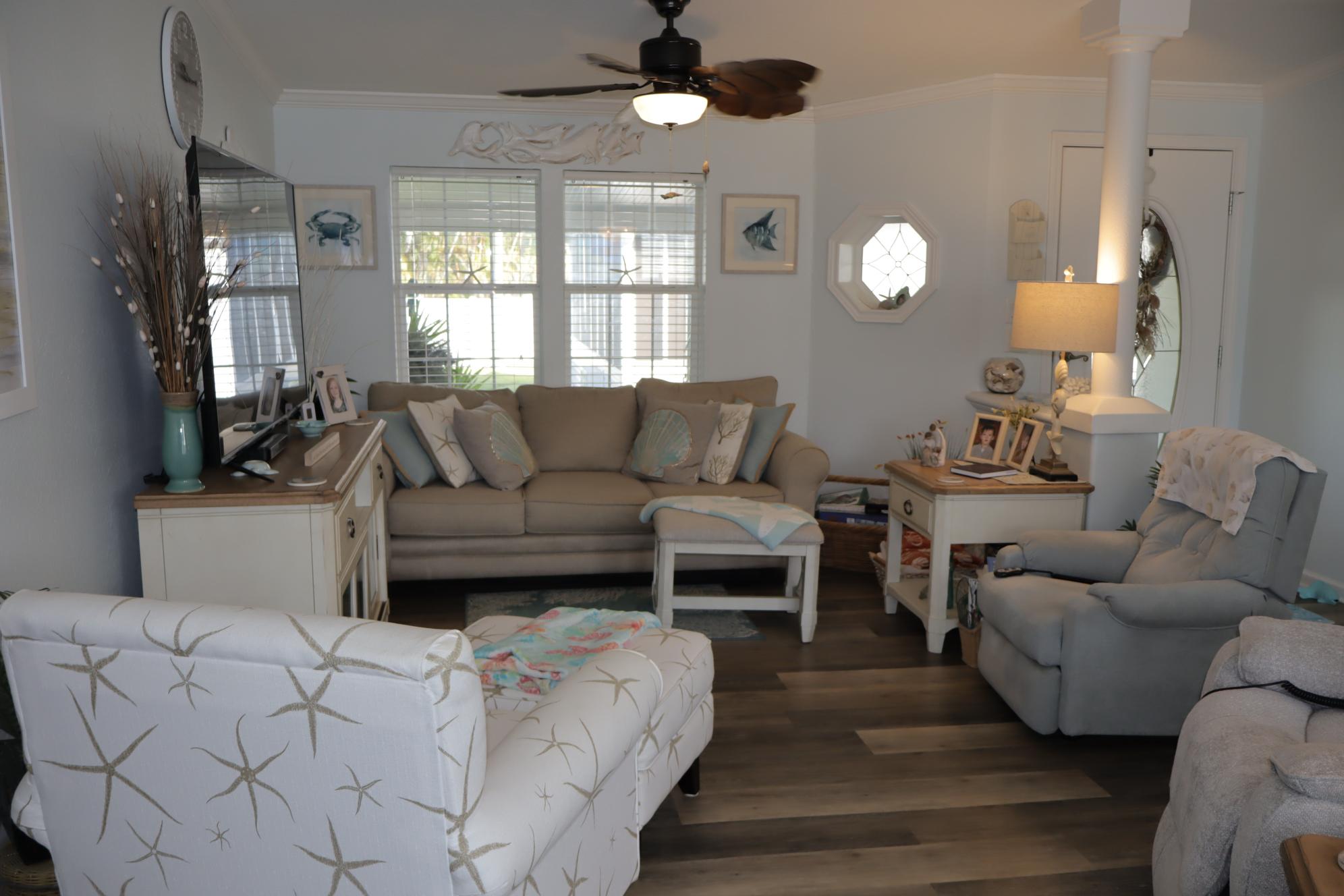 Looking for a bigger home to reside in. Look no further! This 1,620 sq. ft. home has 2 bedroom and 2 bath with office. The home is sold unfurnished. Enjoy the 2 lanai 12’ X 15’ Ground Level Screen Lanai, 10’ X 17’ Raised lanai with windows, 12' X 12' Shed, Washer & Dryer in Utility Room in the home, Dry Wall, and Crown & Base Molding.